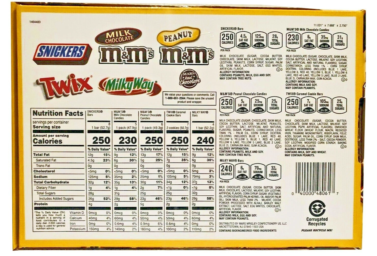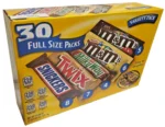 - Contains one (1) 30-count box of full-sized, individually wrapped Chocolate & Chewy Candy: (8) SNICKERS Milk Chocolate Bars, (6) M&M’S Peanut Chocolate Candy, (6) M&M’S Milk Chocolate Candy, (4) SKITTLES Original Chewy Candy, (3) STARBURST Original Chewy Candy, and (3) 3 MUSKETEERS Milk Chocolate Bars Assortment